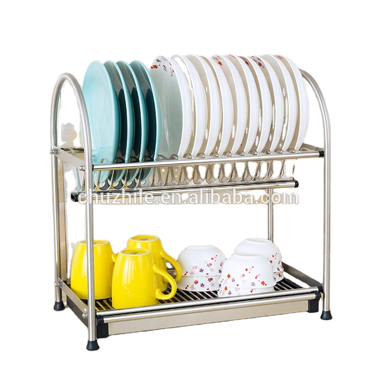 Heißer Verkauf D-1350 Double-Tier Edelstahl Dish Drainer Rack Anti-Rost Küche Organisation über Waschbecken Geschirr Custom Design